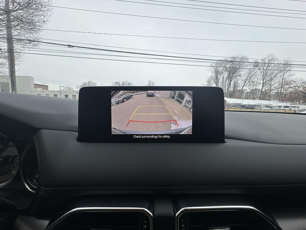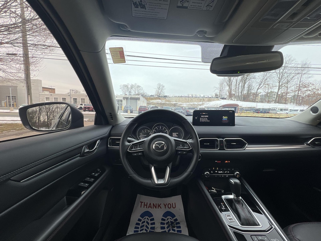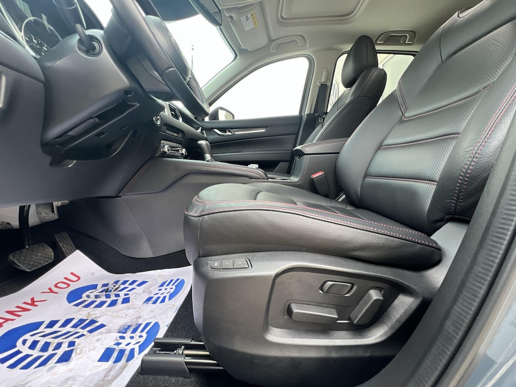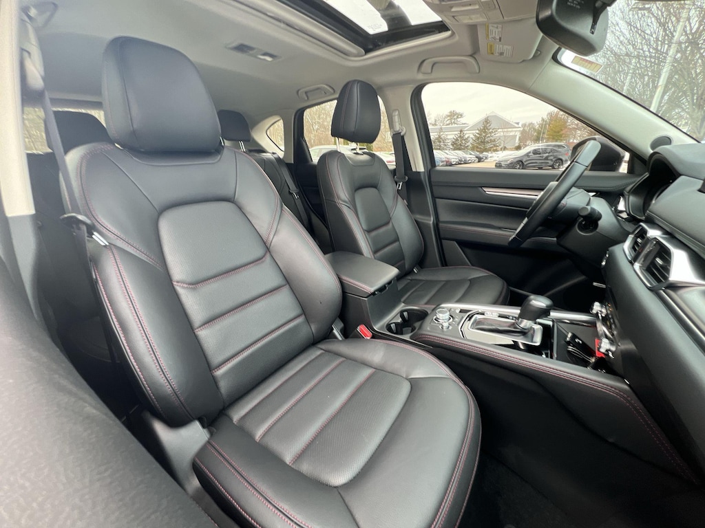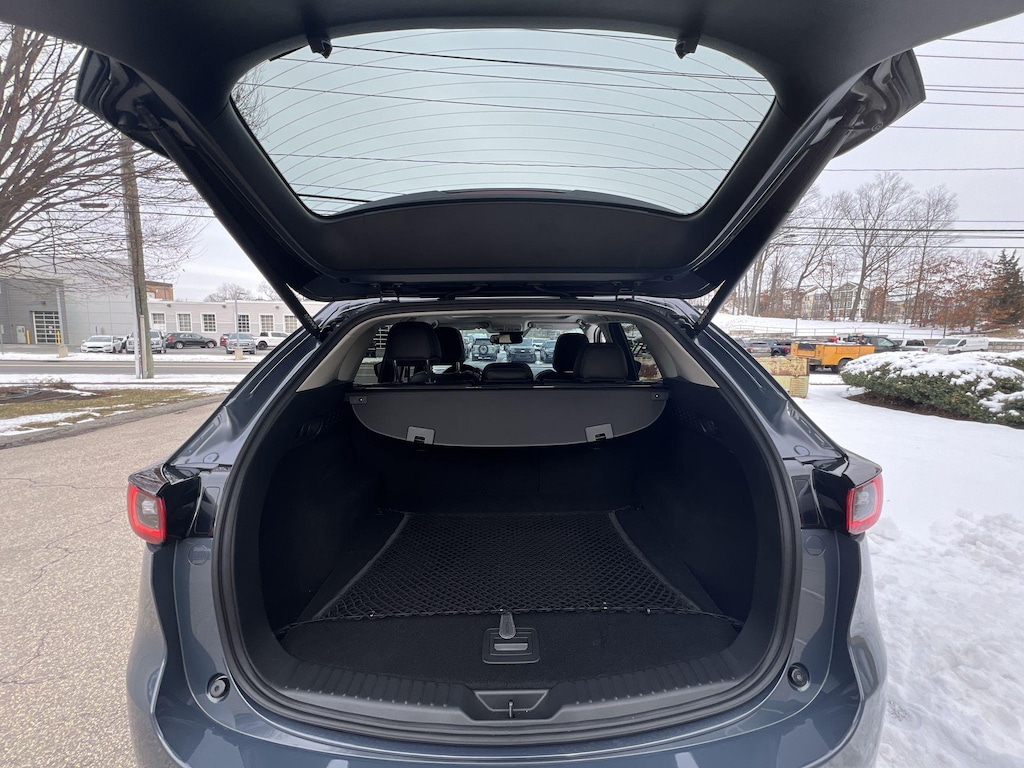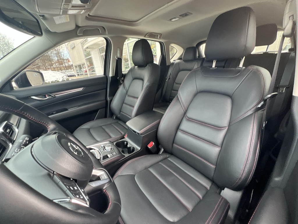 Additional features that set this CX-5 apart include a power liftgate, retractable cargo cover, all-weather floor mats, and roof rack side rails for added versatility. The one-touch power sliding glass sunroof adds an open-air element to your drives, while the auto-dimming rearview mirror and rain-sensing wipers enhance convenience and safety.